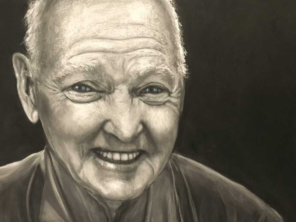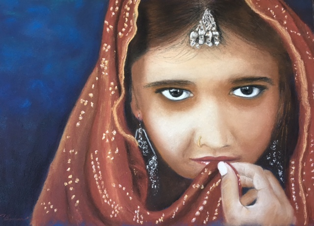 Vietnamese Woman, White Charcoal Heron Reef Pastel. Sold